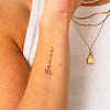 You are brave and strong. You chose the tattoo "Brave" because it represents exactly who you are and what you stand for. There is a deeper meaning behind this tattoo that inspires you and gives you courage every day. "Brave" symbolizes the ability to overcome fears and face challenges. It reminds you that you can achieve anything if you just have the courage to keep going. The tattoo "Brave" can be placed in different areas of your body. It is perfect for larger areas like the abdomen or back to emphasize its powerful message. At the same time, it also looks beautiful on smaller, more delicate areas like the neck or foot, adding a subtle yet strong statement to your look. There are many styling tips for the tattoo "Brave". It is a versatile accessory that is perfect for various occasions and outfits. Wear it at sports events to show your determination, or pair it with your favorite outfit while shopping. You can even take it with you on vacation to emphasize your sense of adventure and courage. The tattoo "Brave" is for those who have the courage to overcome their fears and pursue their dreams. It is perfect for young people who choose to forego permanent tattoos but still want to enjoy the fun and freedom of a temporary tattoo. You can also try it out to see what it's like to have a tattoo before committing to a permanent one. Whether you are an athlete, artist, or adventurer, the tattoo "Brave" will help you express your unique style and remind you that you can achieve anything if you just have the courage to follow your dreams. With the temporary tattoo "Brave" from Inkster, you can show your strength and determination without committing to a permanent change. Let yourself be inspired by its symbolic meaning and incorporate it into your personal style. Be brave, be strong, be "Brave"!