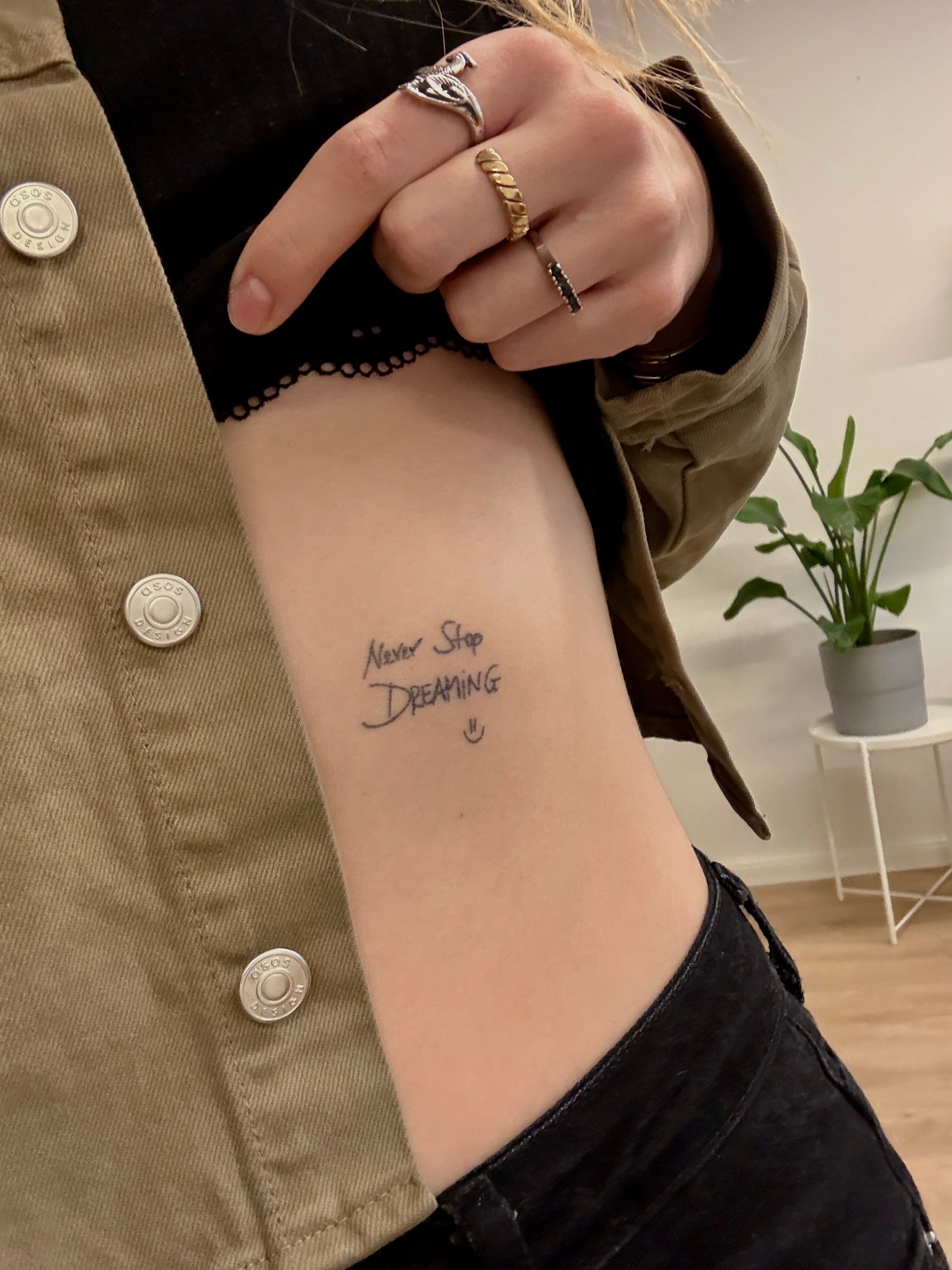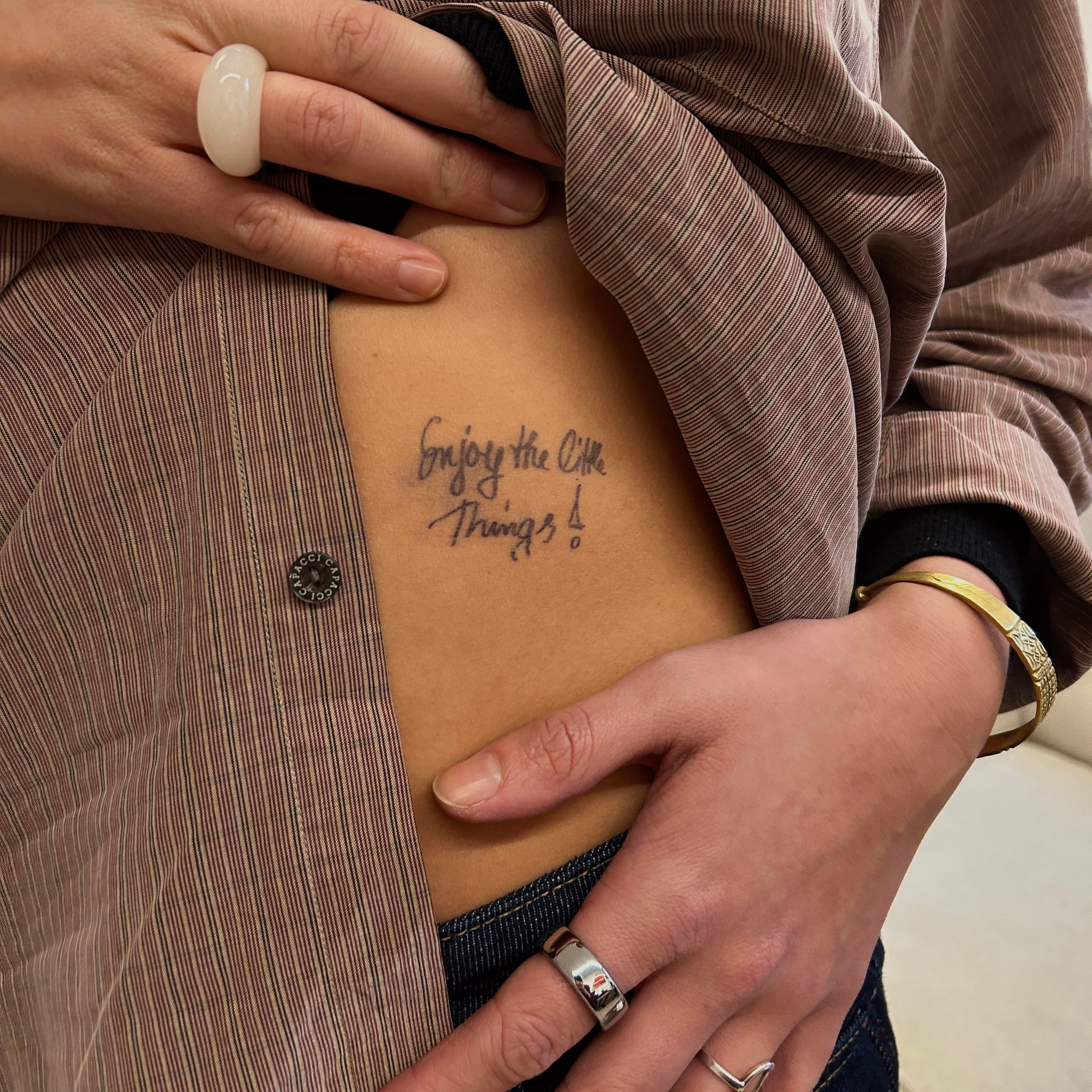 We couldn't produce single tattoos for a fair price because too much work happens in the background. Our enthusiastic customers test their design in several places, give it as a gift to friends or family or keep some for special moments & events. Of course, you can also order your personalized tattoo for larger groups.