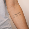 Are you looking for a temporary tattoo that perfectly expresses your attitude? Then our tattoo "i'm too sober for this shit" is just right for you. This tattoo embodies a deeper meaning that symbolizes you and your attitude towards life. The inspiration behind this tattoo comes from the desire to stay away from unnecessary drama and negative influences. It expresses that you do not want to be influenced by things that are not good for you. Whether it's toxic relationships, unhealthy habits, or just unnecessary stress - you are too clear-headed and strong to deal with it. The tattoo "i'm too sober for this shit" encourages you to focus on what matters and free yourself from everything else. When it comes to the placement of the tattoo, there are many ways to showcase it. On larger areas like the chest or back, the tattoo can serve as a striking statement piece. On smaller, finer areas like behind the ear or on the ribs, it becomes a subtle yet meaningful detail. The tattoo "i'm too sober for this shit" is a versatile accessory that can be combined perfectly with different outfits and for various occasions. It adds an edgy touch to your everyday look and is especially great for birthday parties or a city trip with friends. Pair it with a casual t-shirt and jeans for a relaxed look or style it with a chic dress for a special occasion. This tattoo is perfect for young people who want to emphasize their individuality and self-expression without getting permanently inked. It is ideal for those who choose not to get permanent tattoos or who just want to test out a tattoo. Whether you are a student looking to show your rebellious nature or a young professional emphasizing your independence - the tattoo "i'm too sober for this shit" suits everyone. Discover the world of temporary tattoos now and let our "i'm too sober for this shit" tattoo inspire you. Show the world your attitude and make a statement - without any regrets. Order your temporary tattoo from Inkster today and experience the fun and freedom it brings.