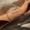 The Shine Tattoo by Inkster is more than just a temporary tattoo - it is an expression of your inner radiance and brilliance. Inspired by the idea that every person has the potential to shine, this tattoo serves as a reminder to ignite your own light and carry it out into the world. The symbolic meaning of the Shine Tattoo lies in its ability to remind you of your inner strength and give you confidence. Whether you are overcoming a personal challenge or simply need a reminder that you are unique and valuable, this tattoo reminds you that you can shine no matter what. The Shine Tattoo can be placed in various locations on your body, depending on how you want to showcase it. For a bold statement, we recommend the shoulder blade or upper back. If you prefer a more subtle look, the top of the foot or finger is a great choice. With the Shine Tattoo, you can complement your personal style in a variety of ways. On a warm summer day, you can pair it with a flowy dress to add a touch of sparkle to your outfit. For concert outings, you can pair it with a edgy look to express your rebellious side. And for weddings, you can pair it with an elegant dress to add a subtle yet eye-catching accent. This tattoo is perfect for those who want to express their individuality without committing to a long-term design. It is ideal for young people looking to showcase their creativity and personality. Whether you're at festivals, parties, or other events, the Shine Tattoo will make you shine. So, let your light shine and get the Shine Tattoo by Inkster now. Show the world that you are unique and ready to shine. Order your temporary Shine Tattoo now and discover the magic of self-expression.
